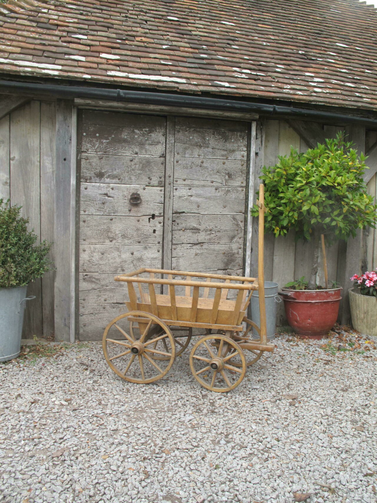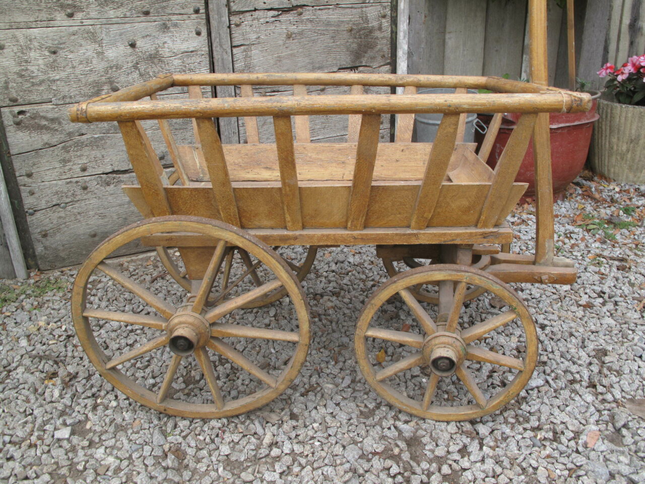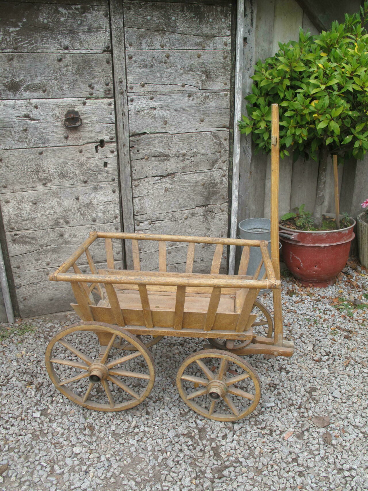 Original 19th Century dog cart from south east France. The cart is in very good original condition and it moves freely on its wheels.