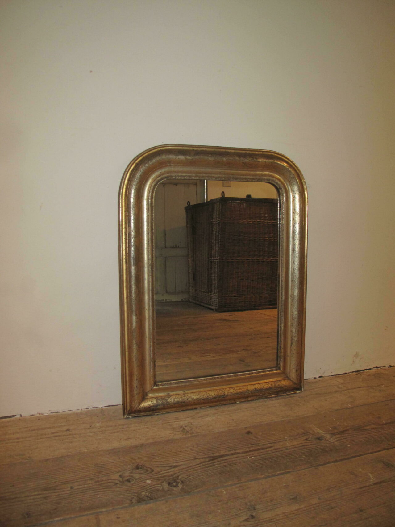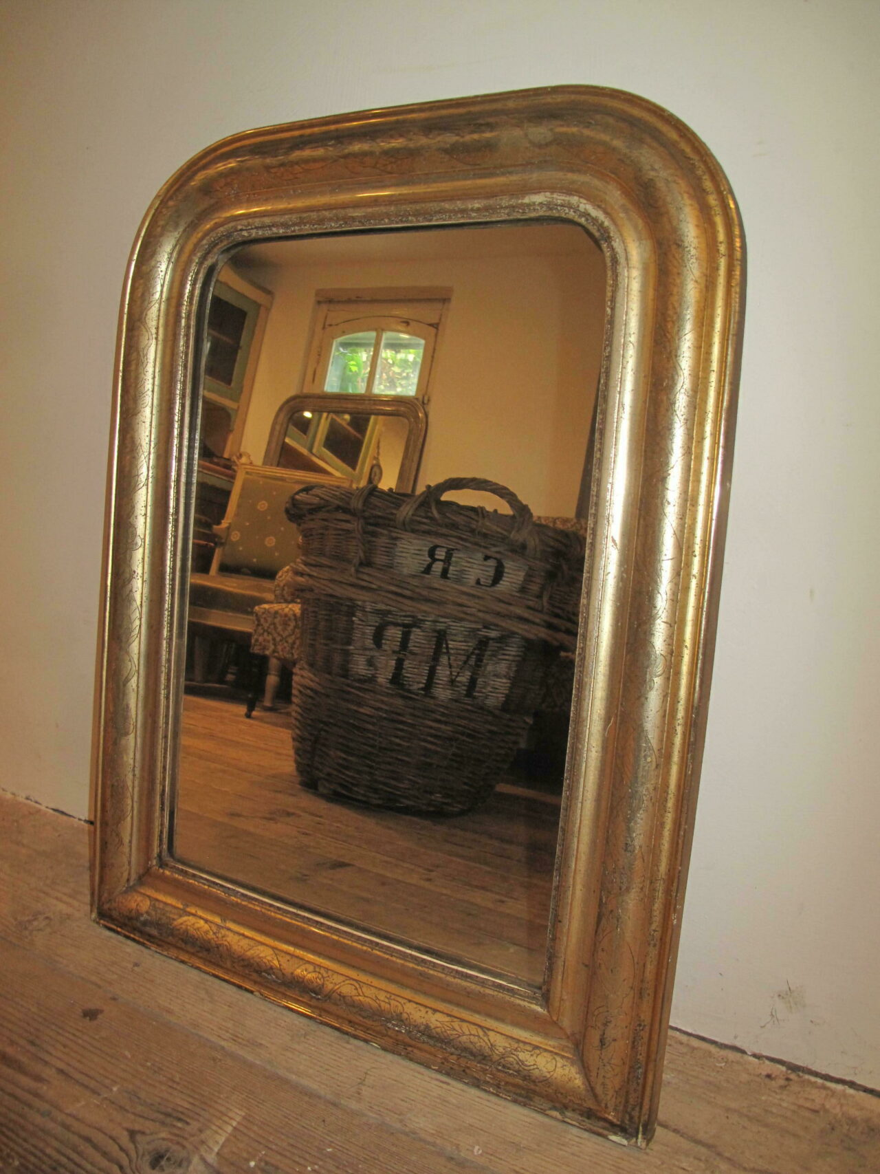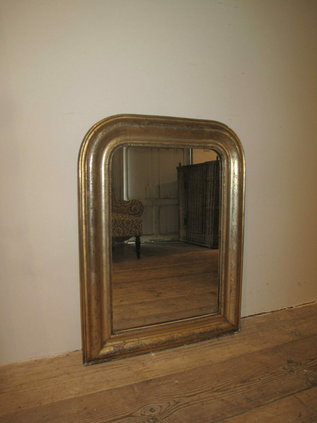 Pretty antique Louis Philippe mirror with its original mellow gilt finish. The mirror also has the original glass and backboards. c.1890.