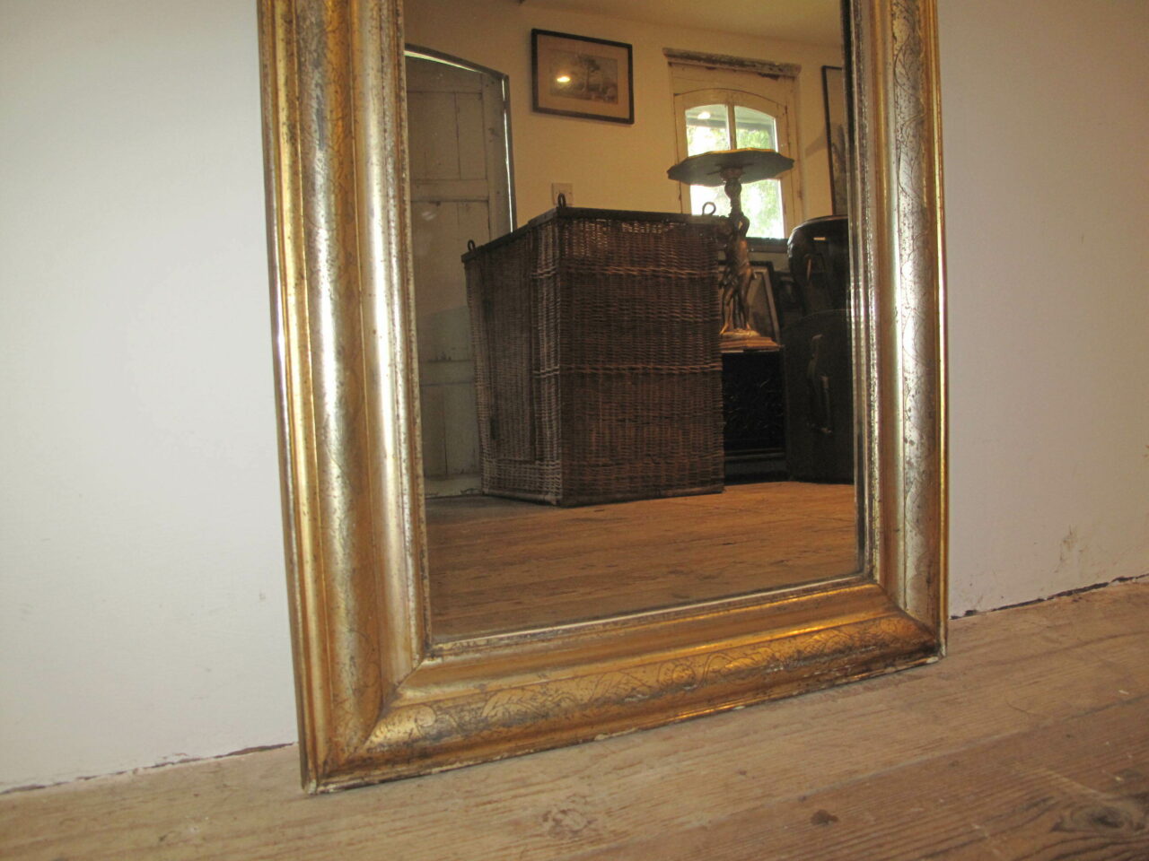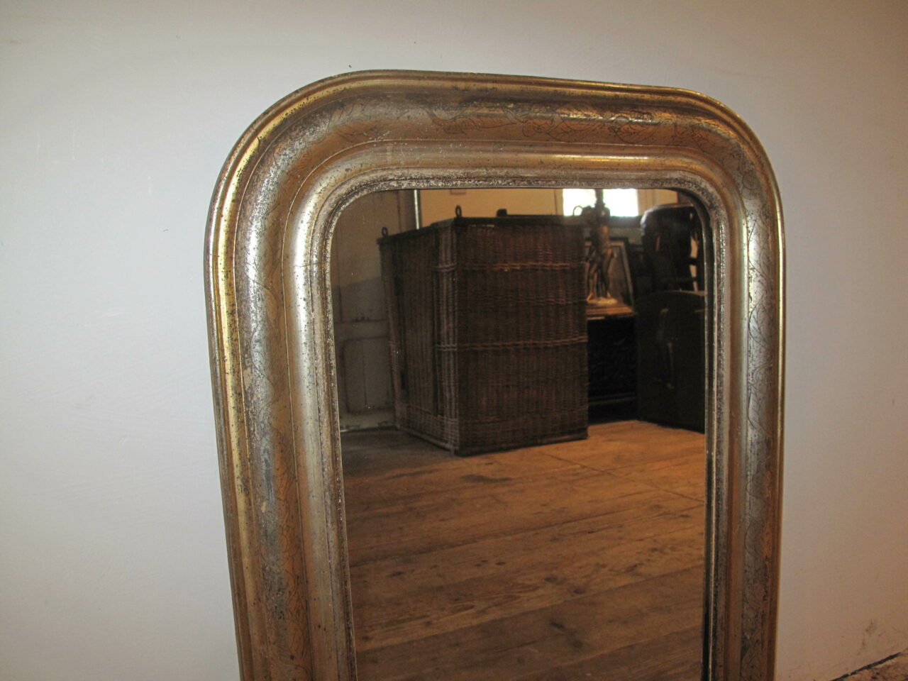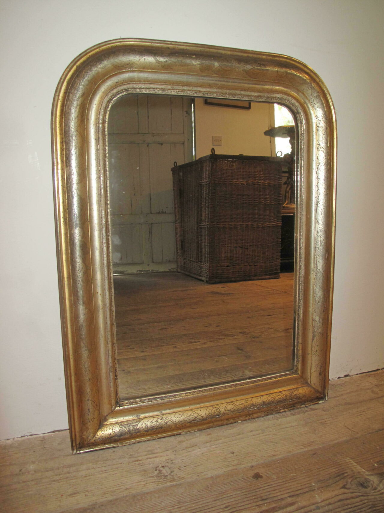 Pretty antique Louis Philippe mirror with its original mellow gilt finish. The mirror also has the original glass and backboards. c.1890.