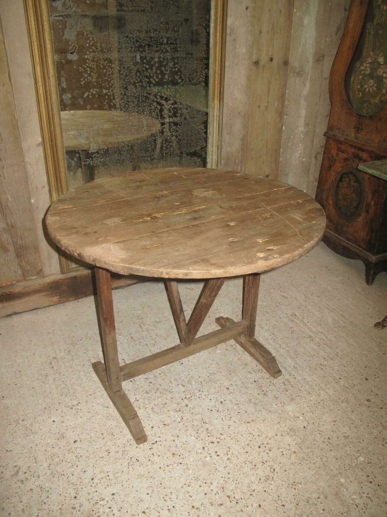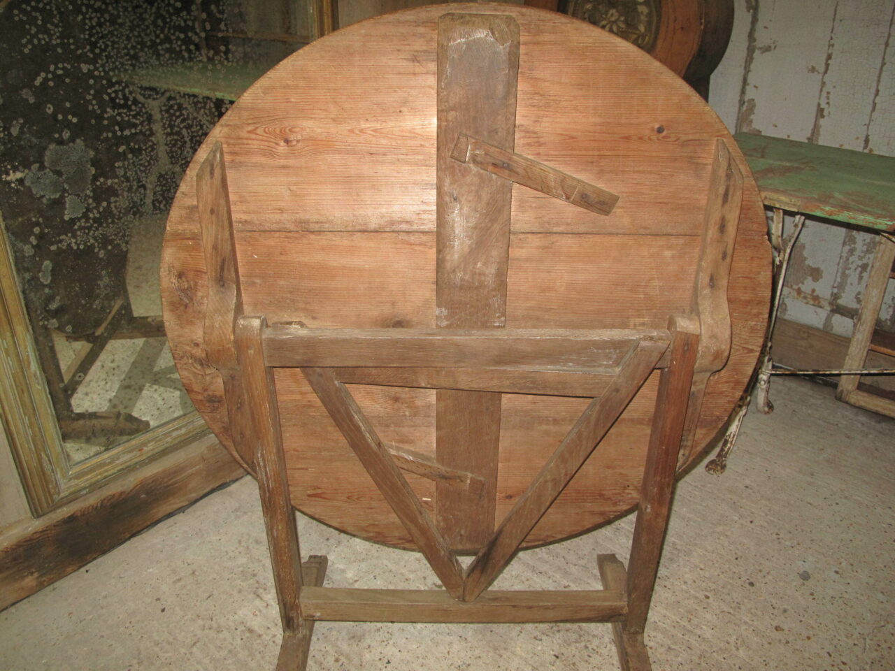 Antique vineyard table with a fruitwood base and a solid pine top. The table is in good condition and folds easily. c.1880.
