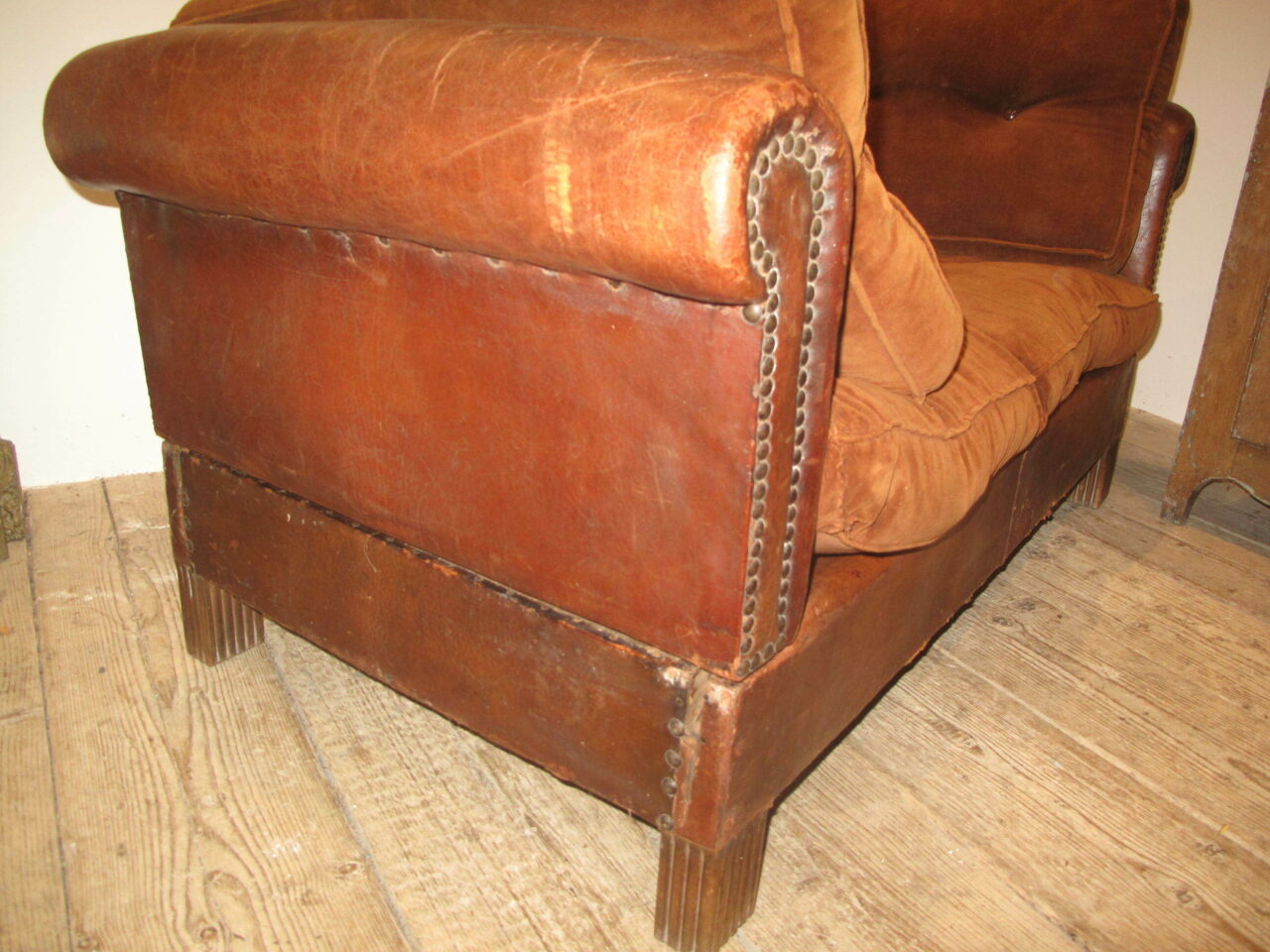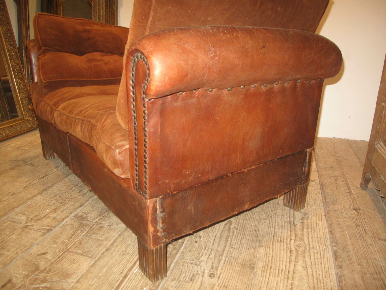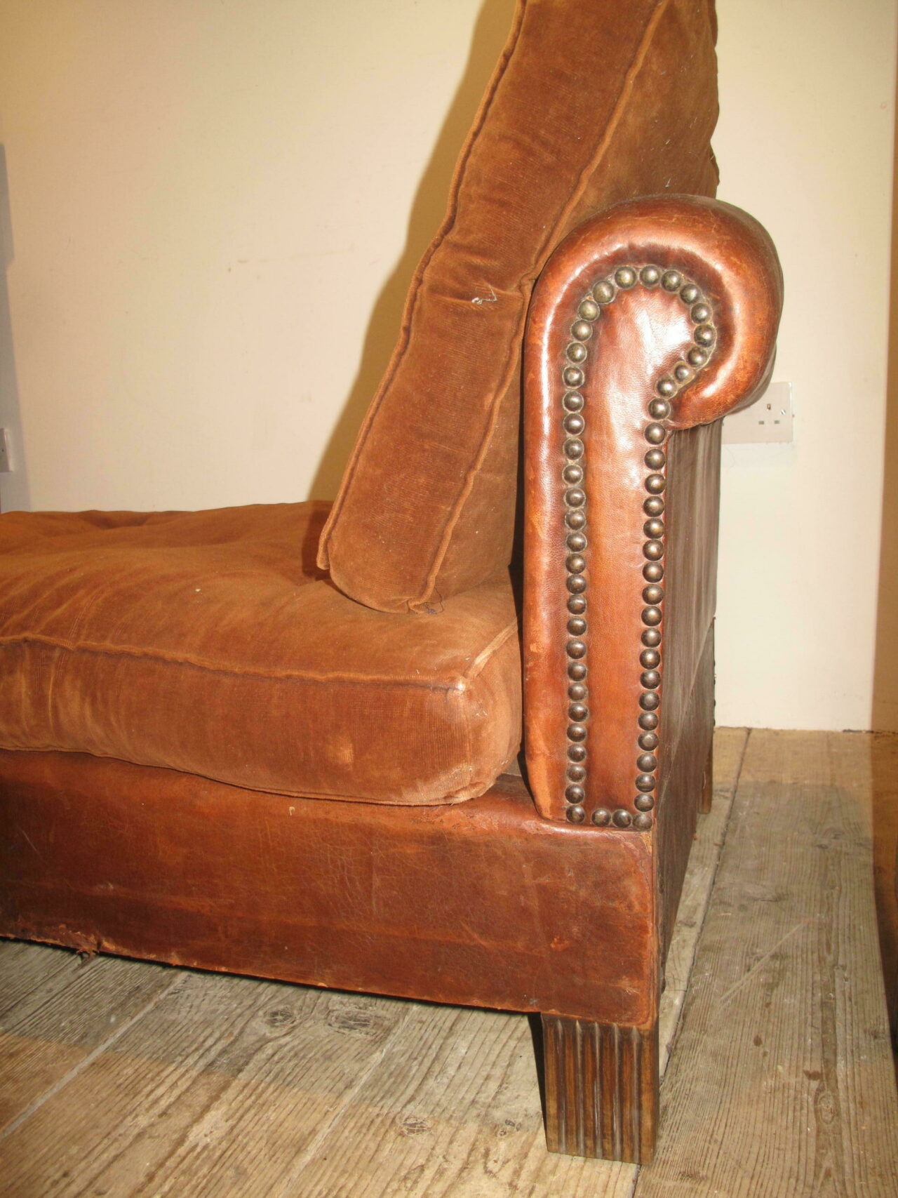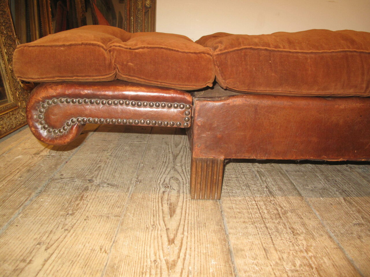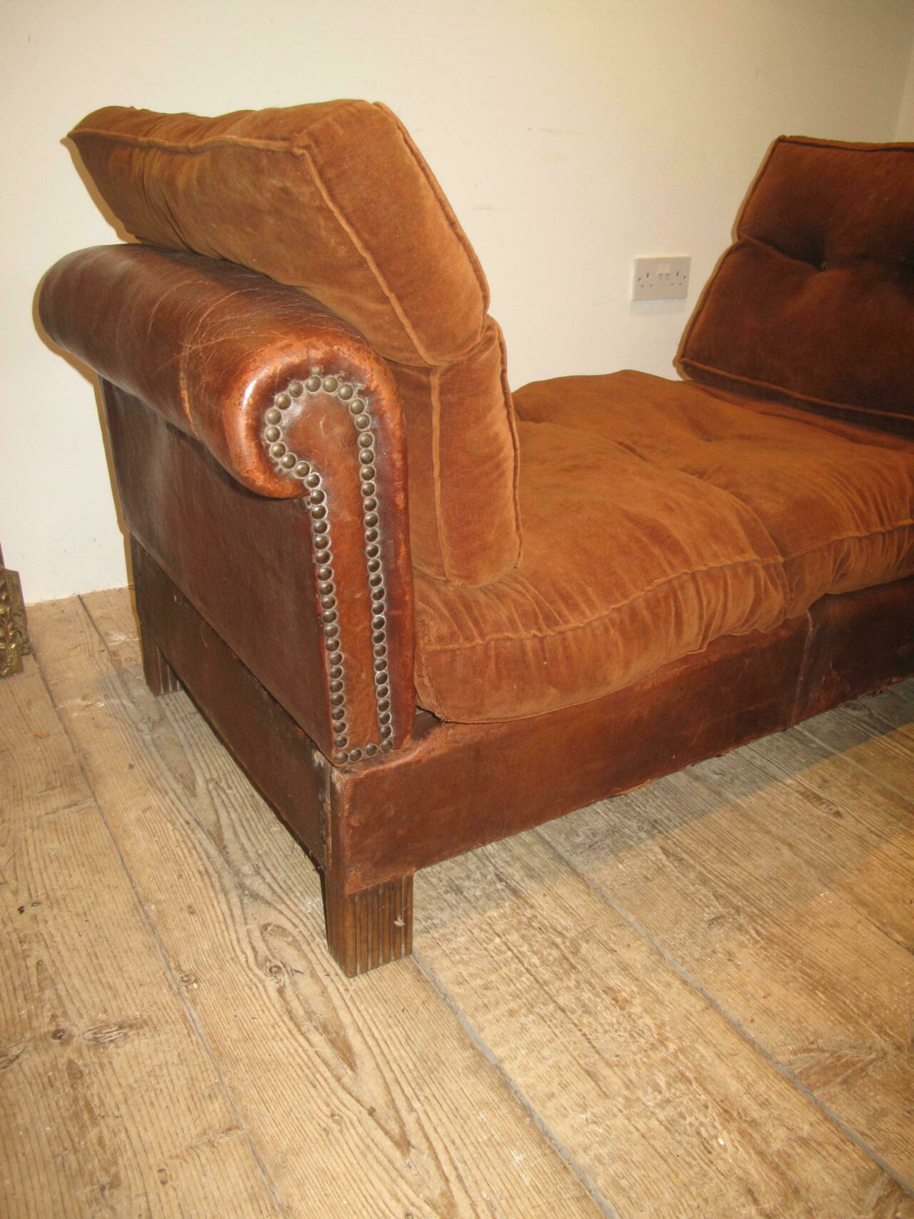 French leather day bed with its original leather. The day bed is in good condition and operates easily. c.1920.