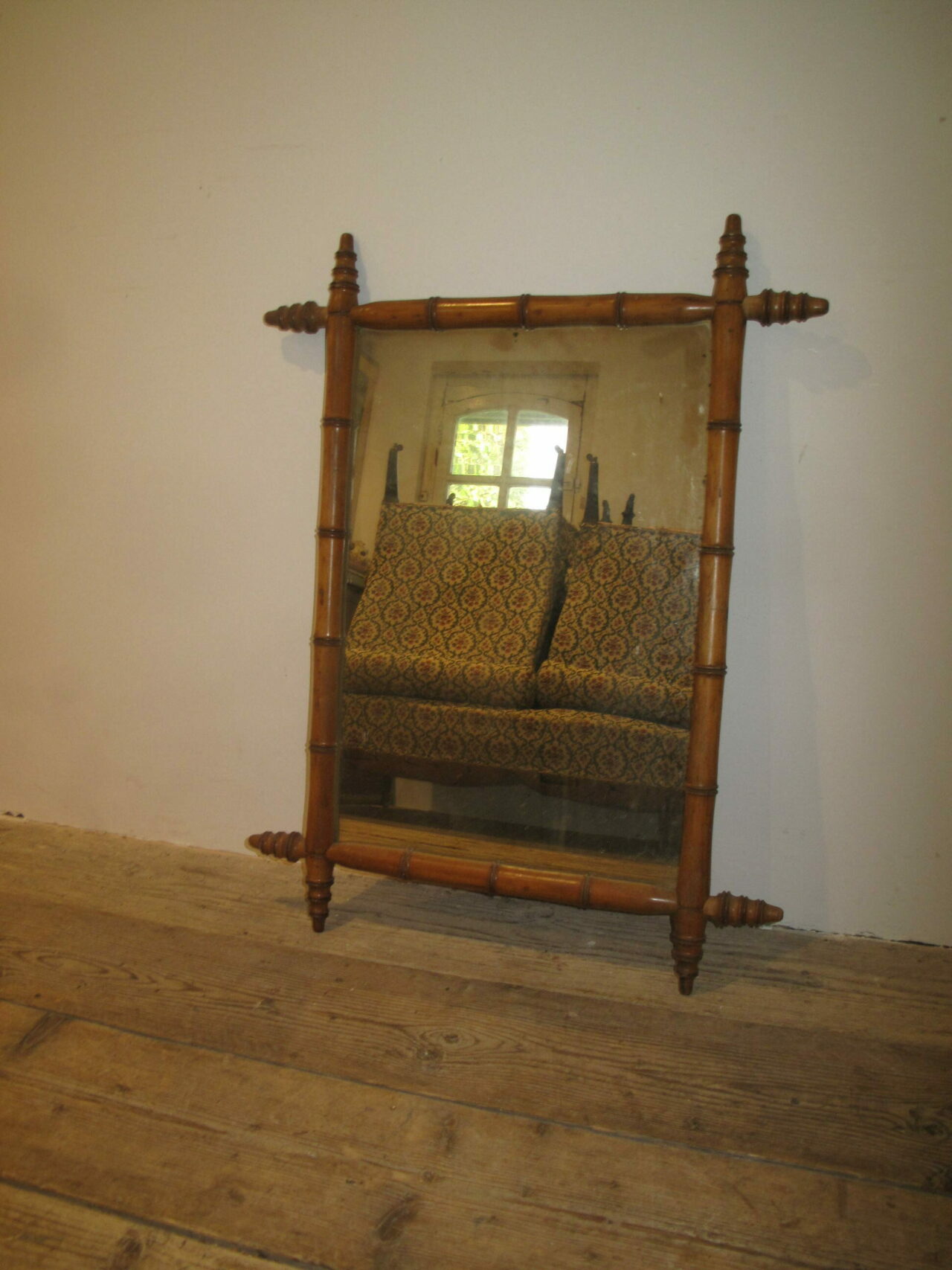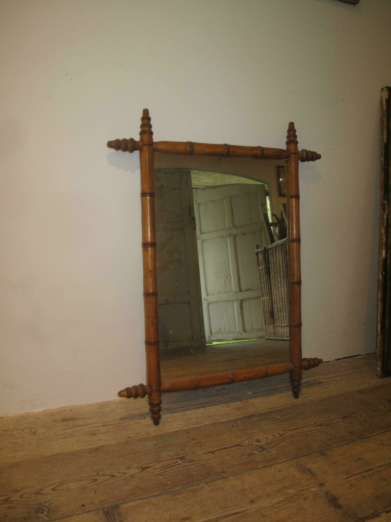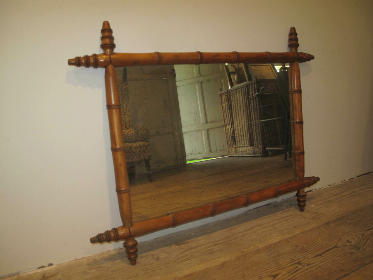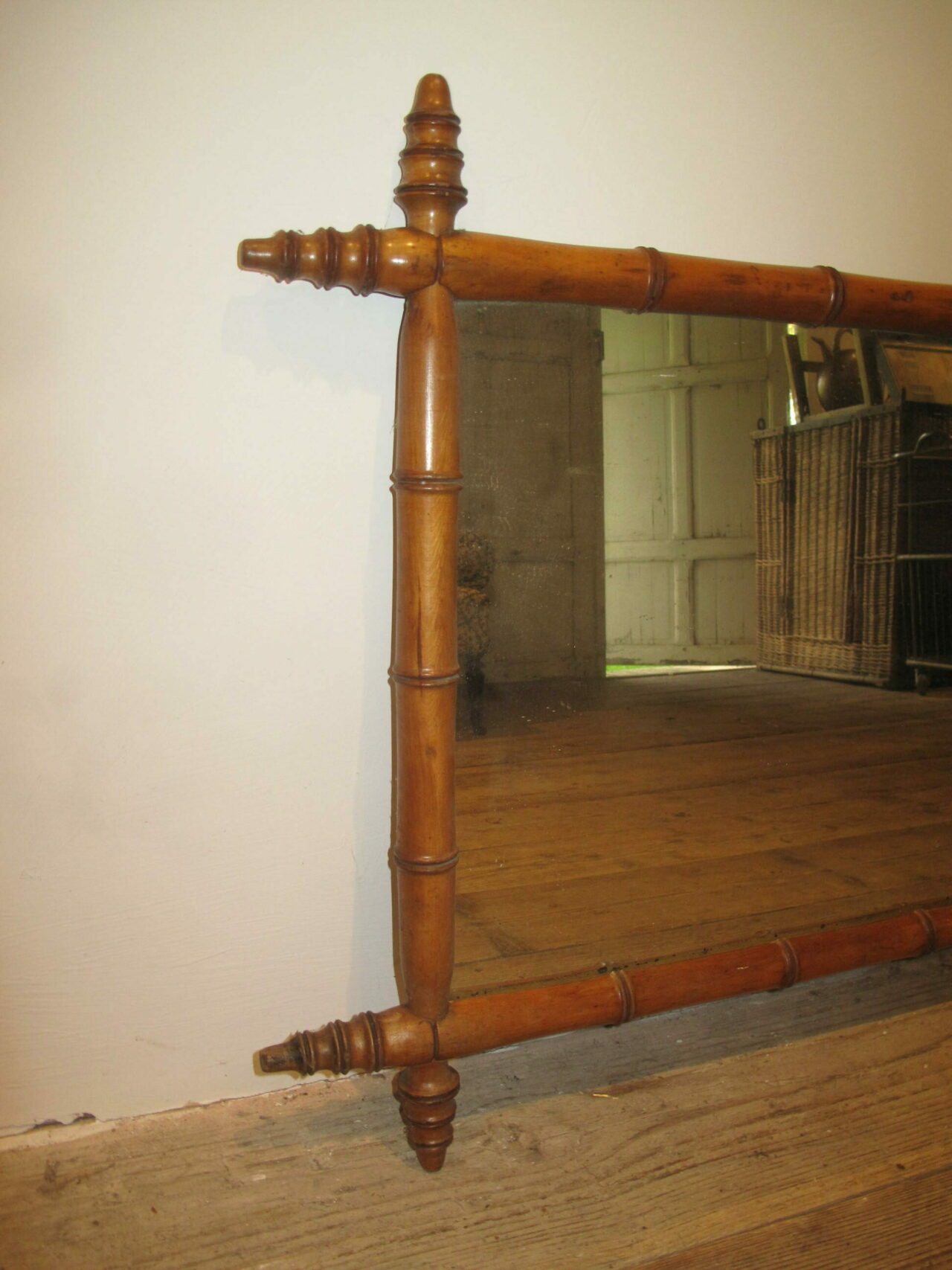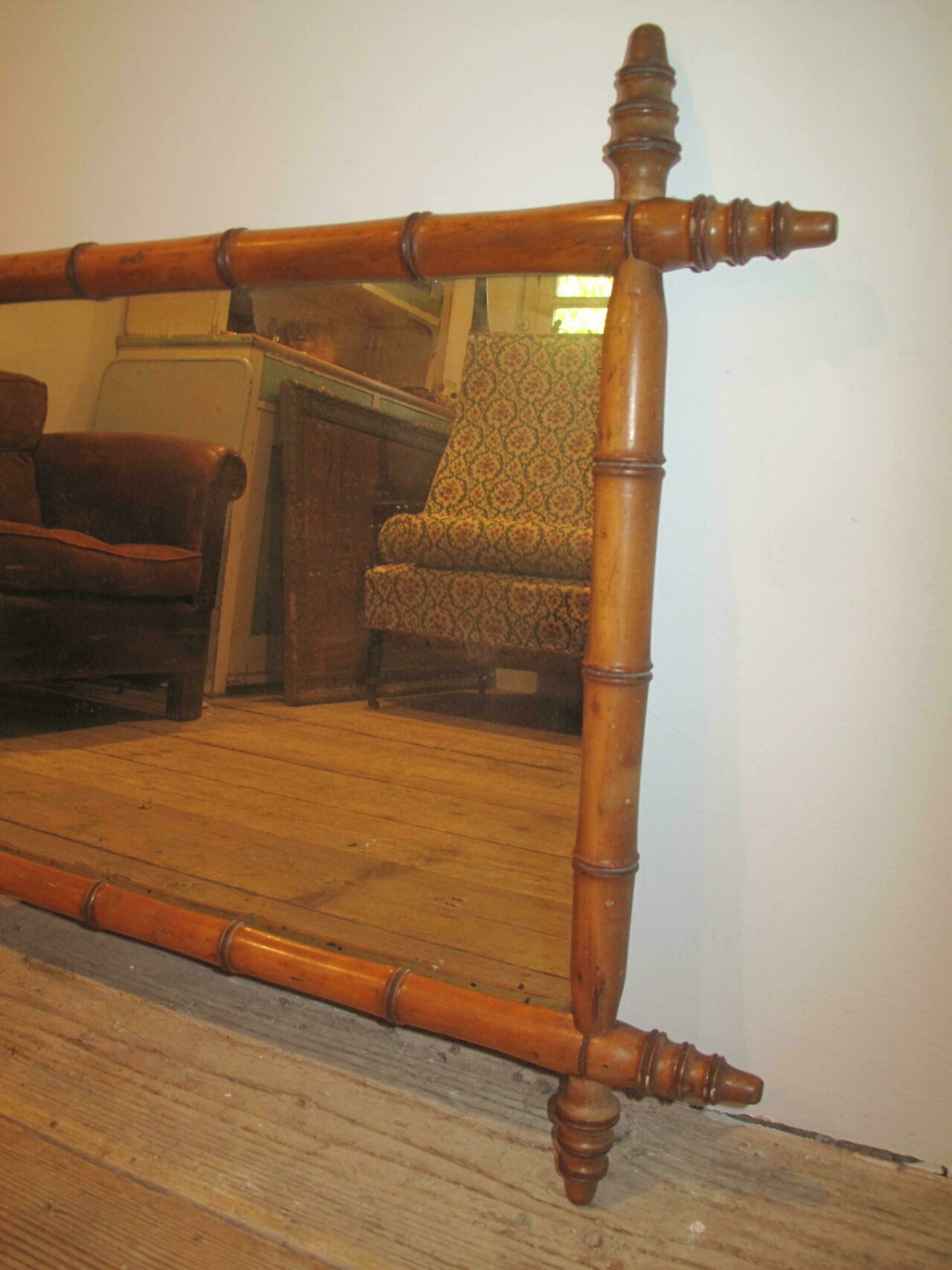 Large antique faux bamboo mirror from south east France. The mirror is in good condition and has its original glass and backboards. No woodworm or decay in this lovely mirror. c.1910.