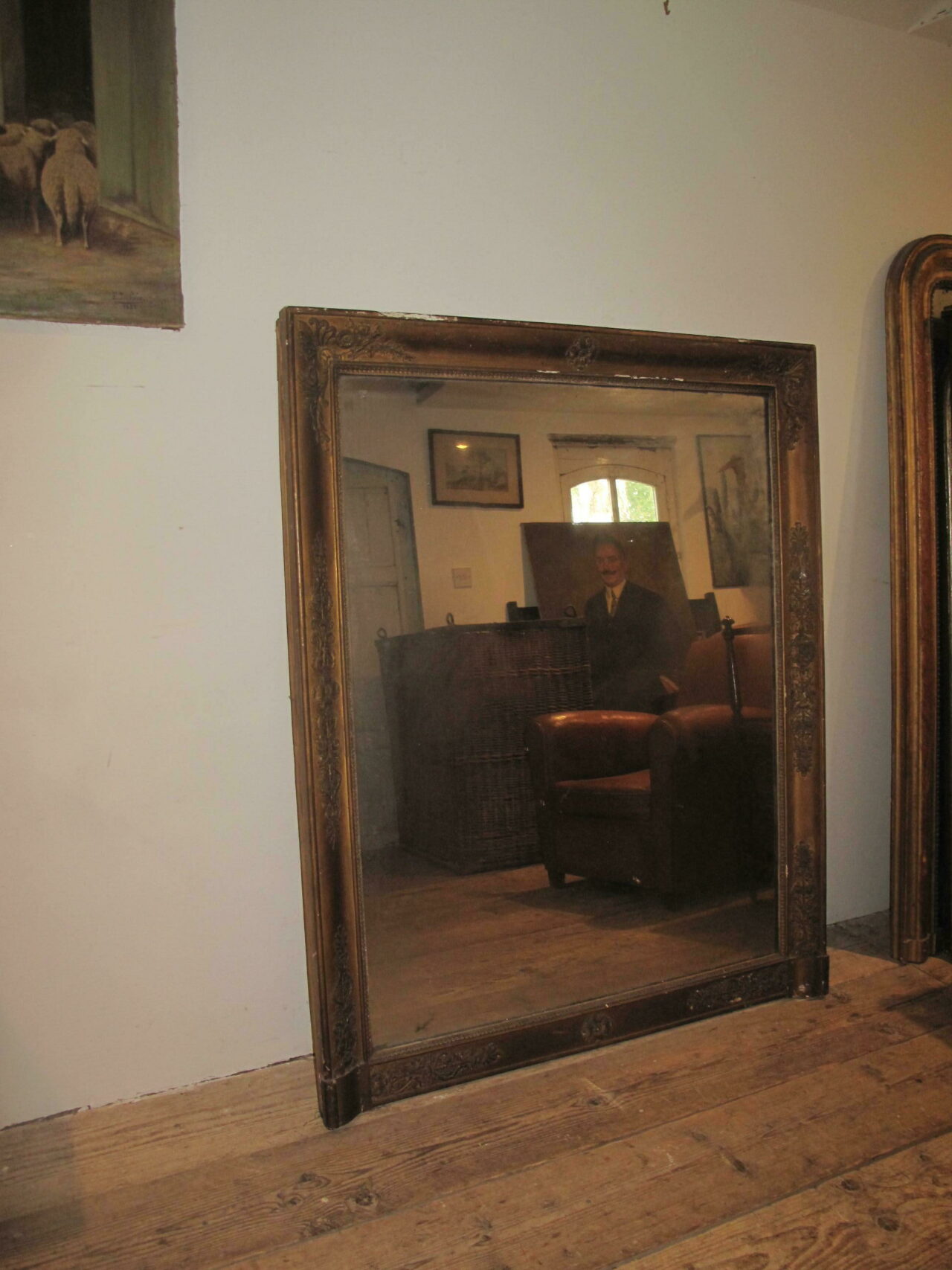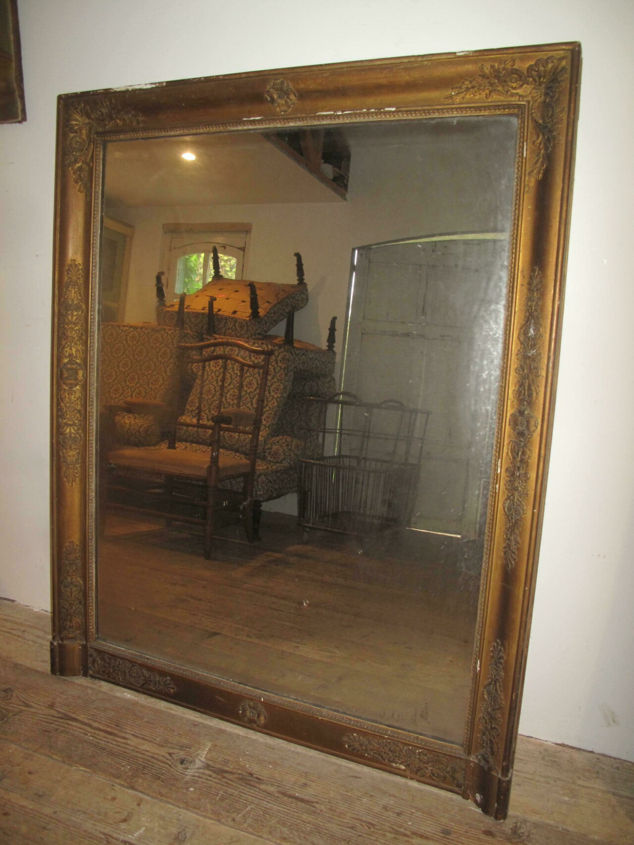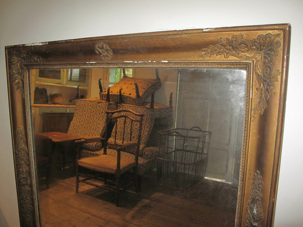 Large antique mirror with its original faded gilding, glass, and back panels. c.1860.