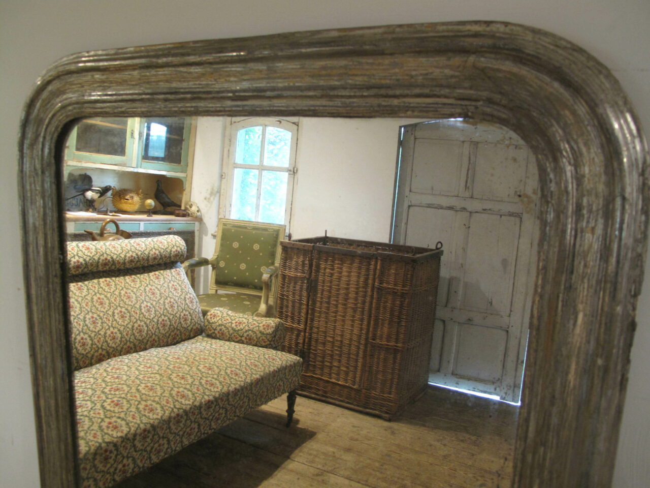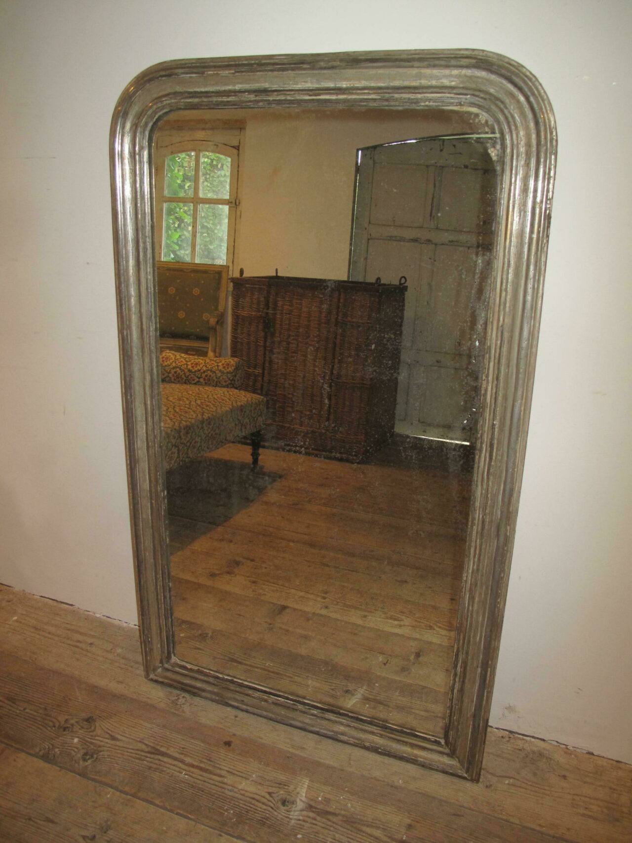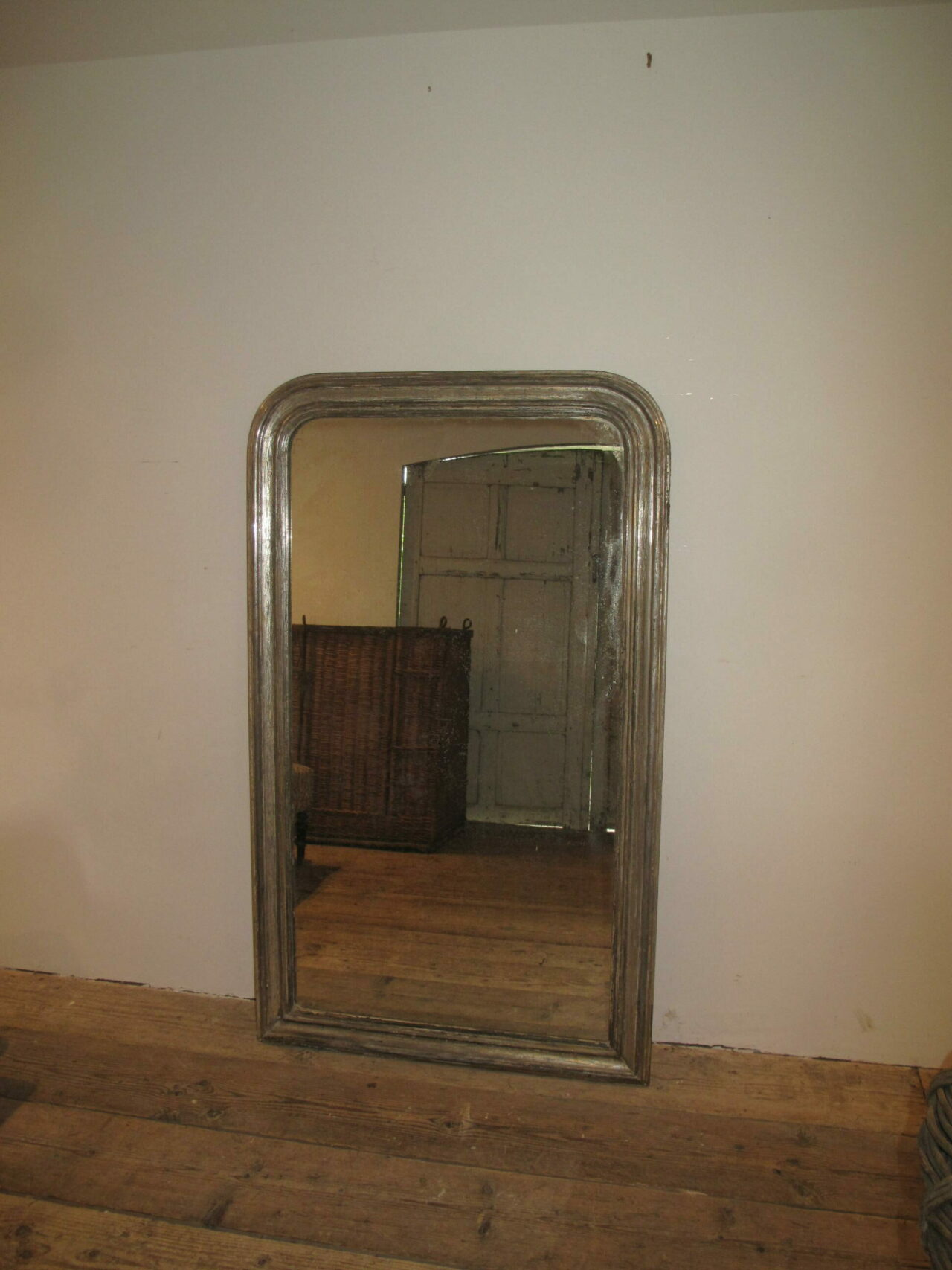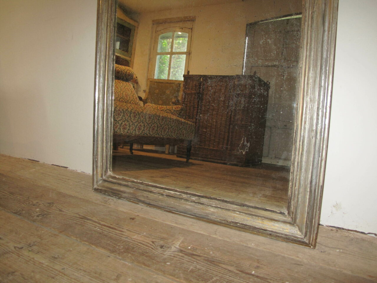 Large antique silver gilt Louis Philippe mirror with its original faded gilt finish. The mirror dates to the late 19th century.