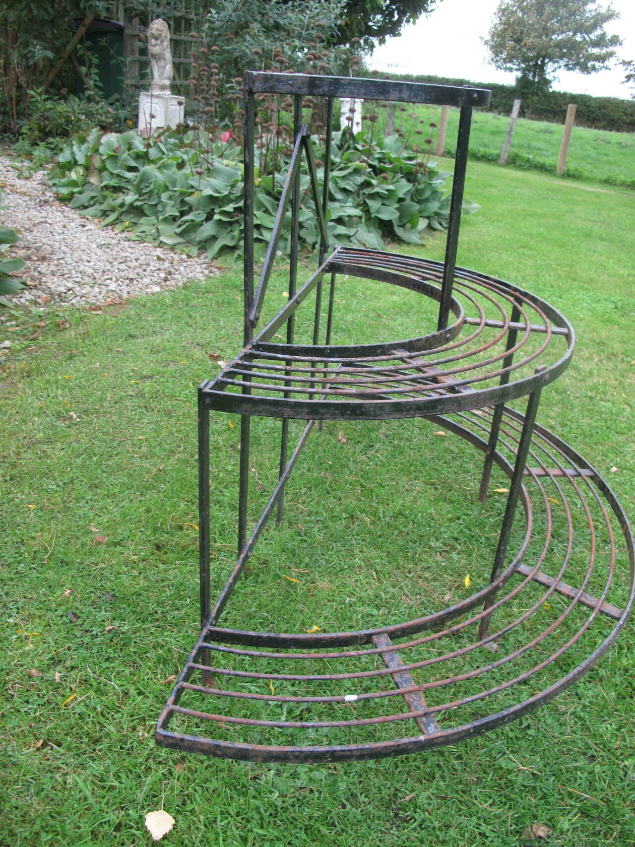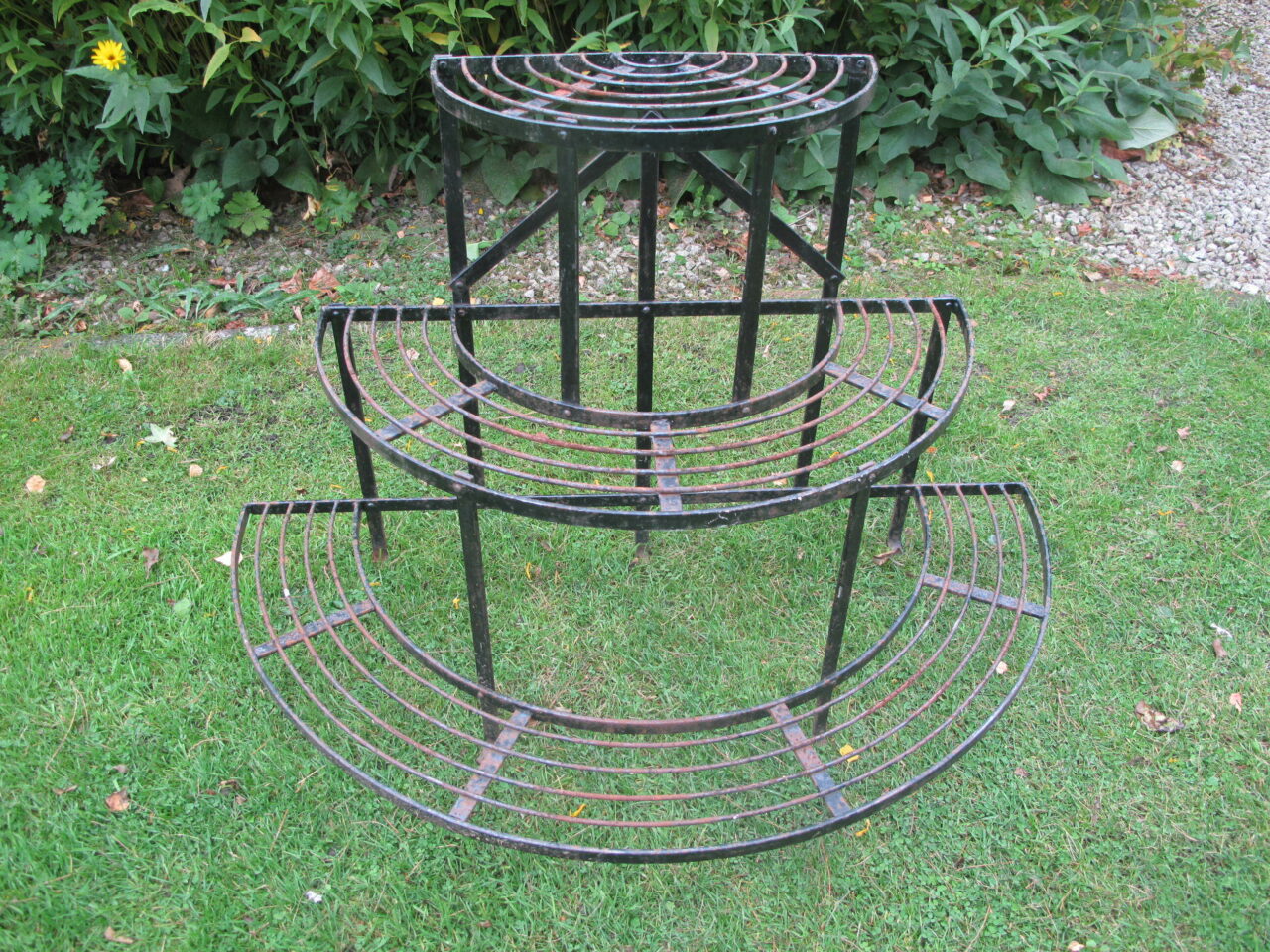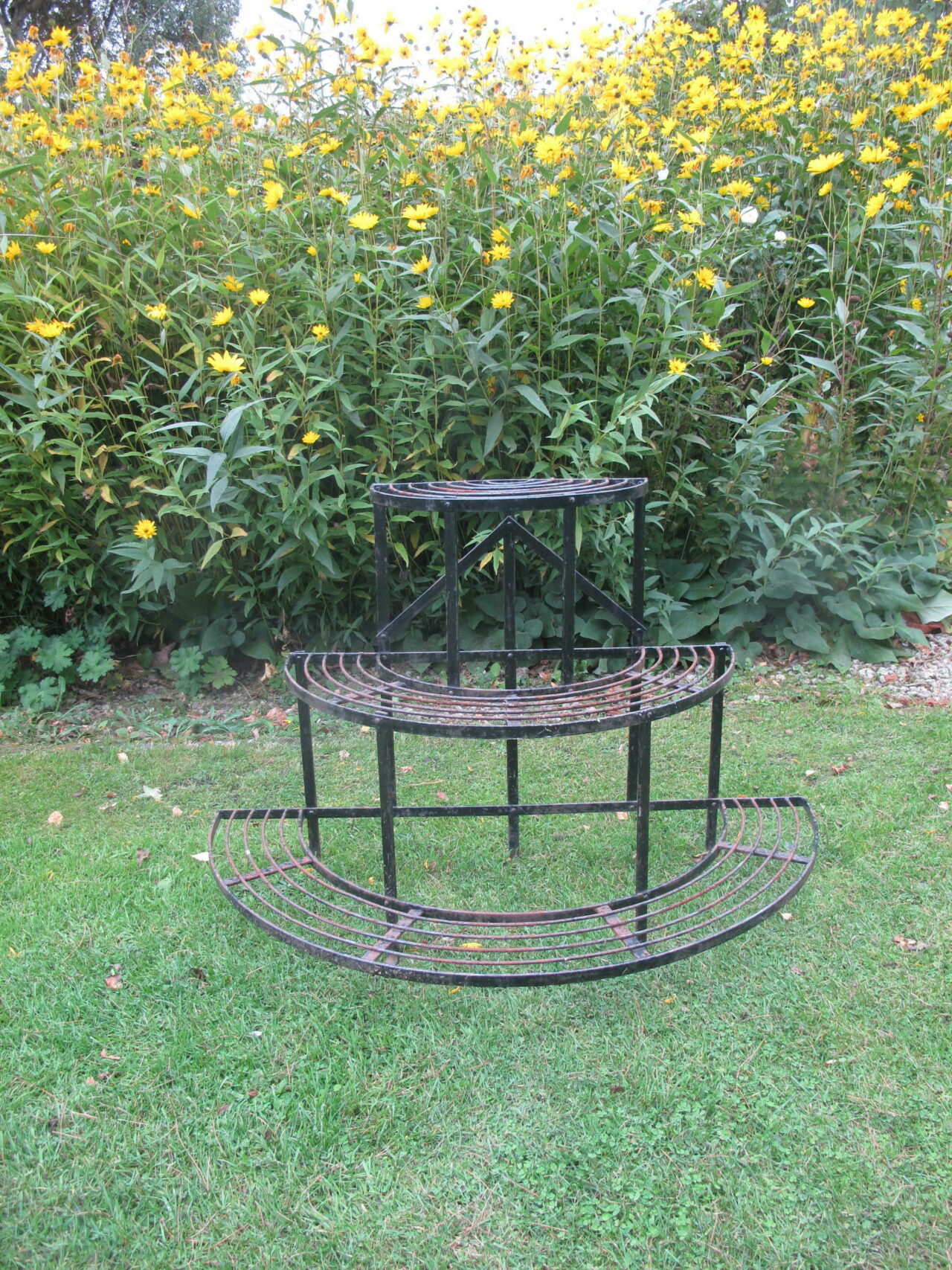 Large good quality heavy garden plant stand. The plant stand is in its original colour and is good condition with light surface rusting in places. The quality of this plant stand will ensure its around in fifty years from now. Mid 20th century.