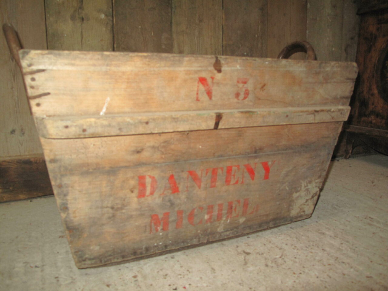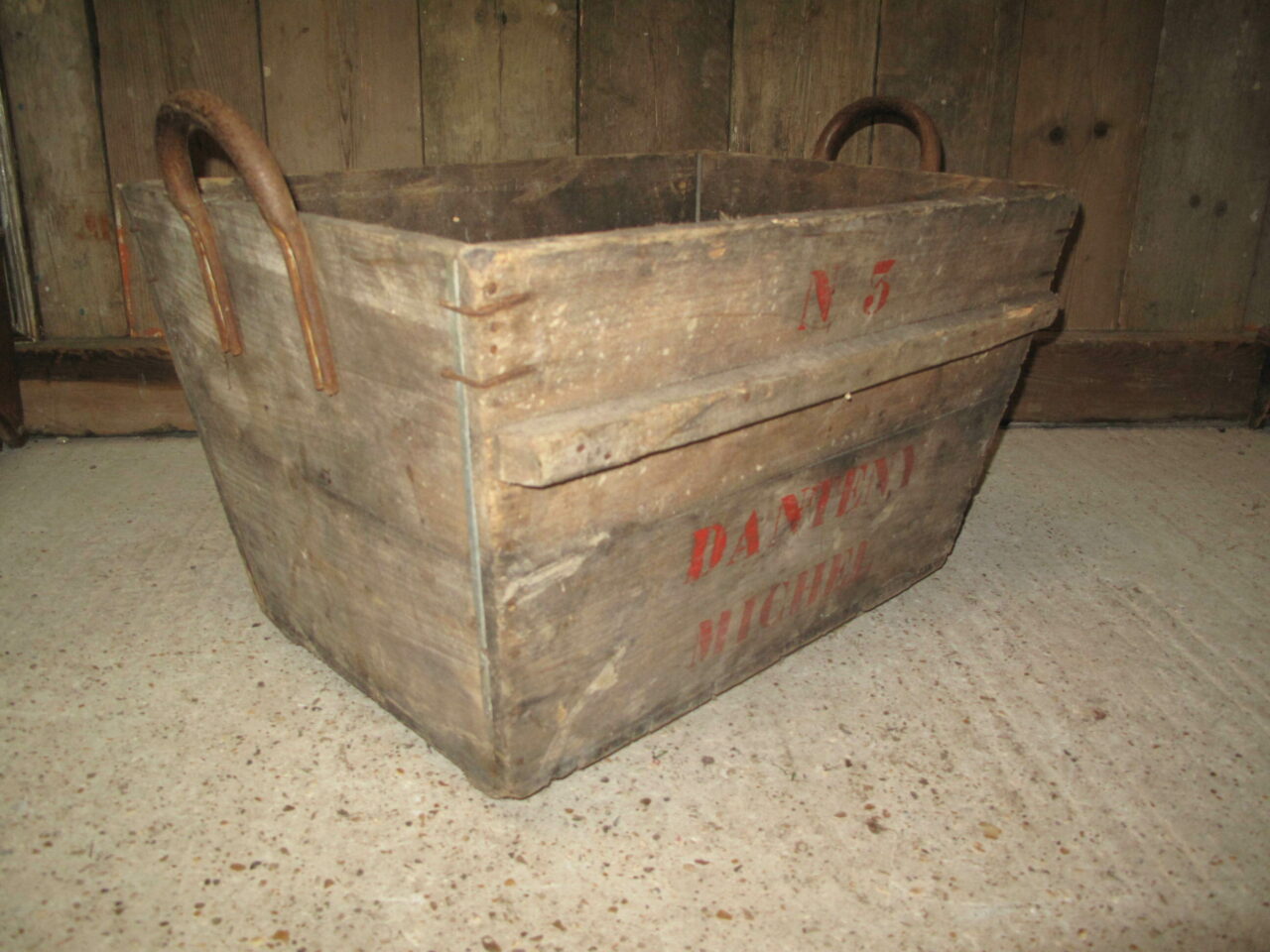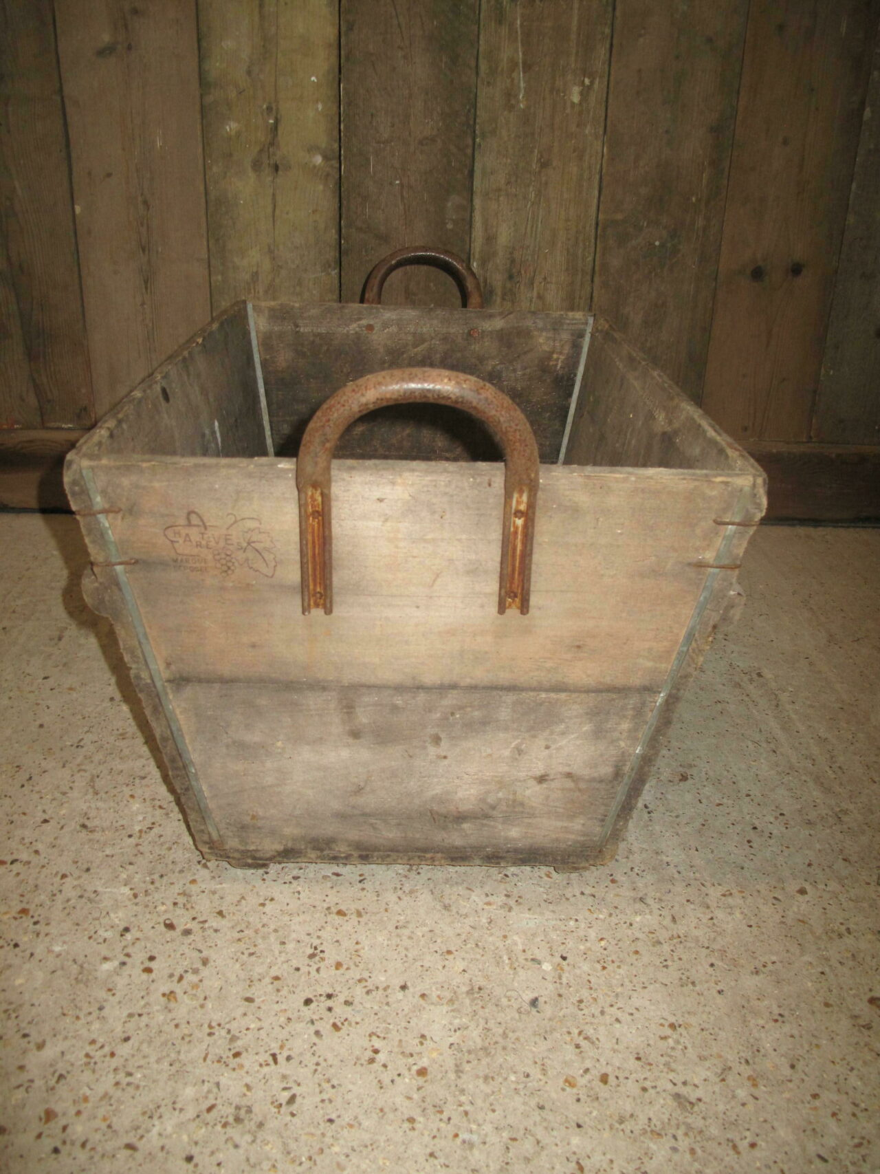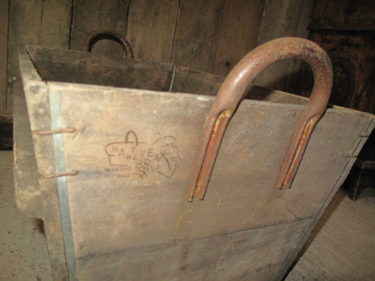 Wooden Champagne harvesting baskets with the growers marks on the side. We have several of these in stock and they date to the early 20th century.